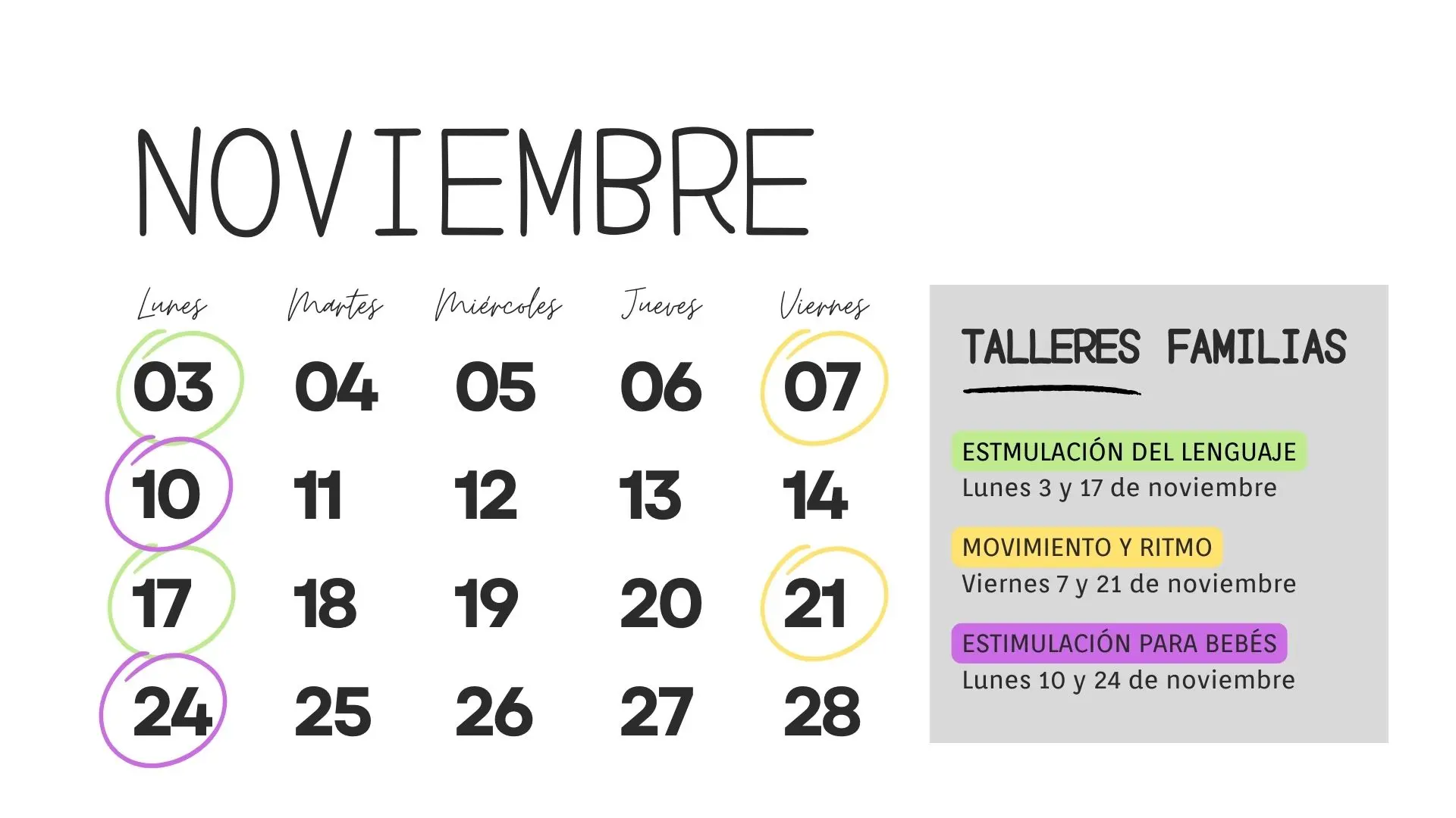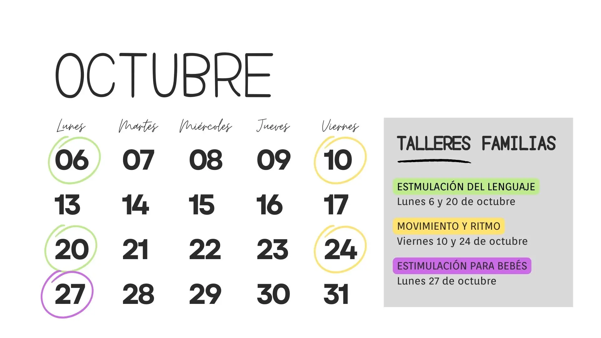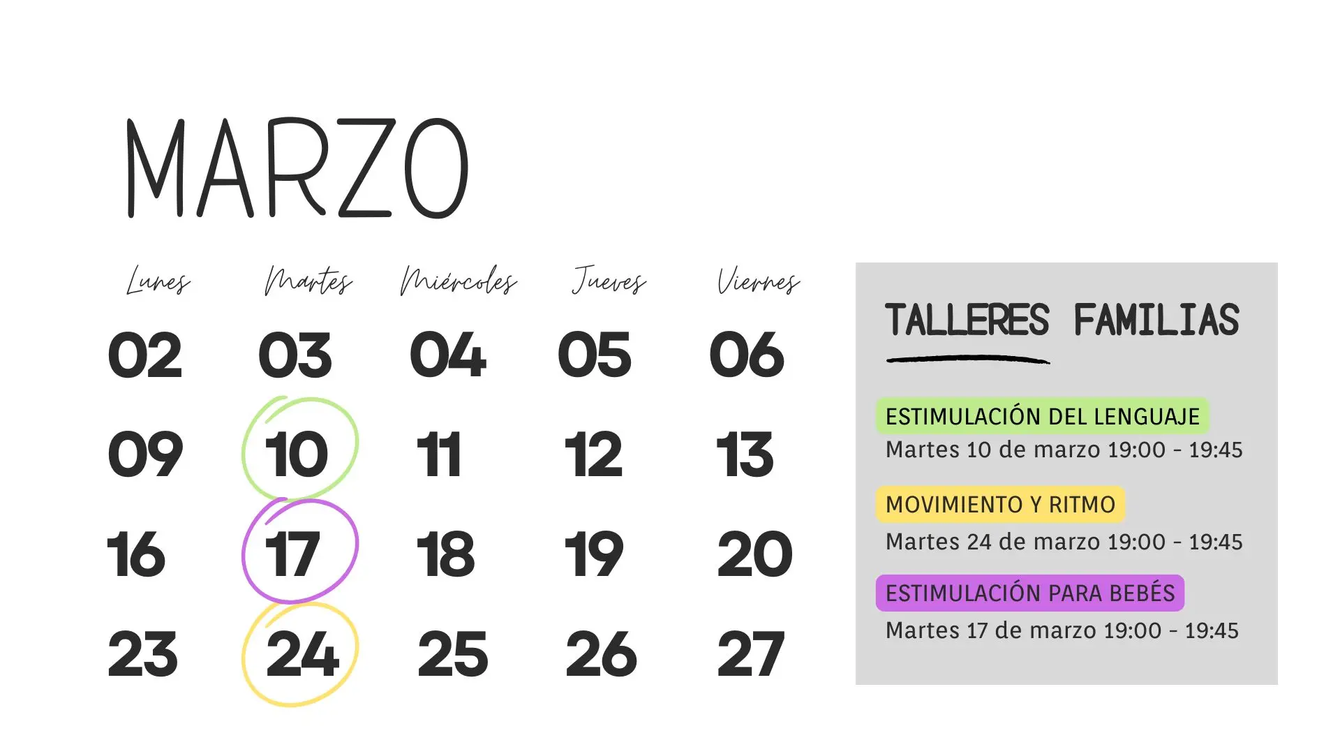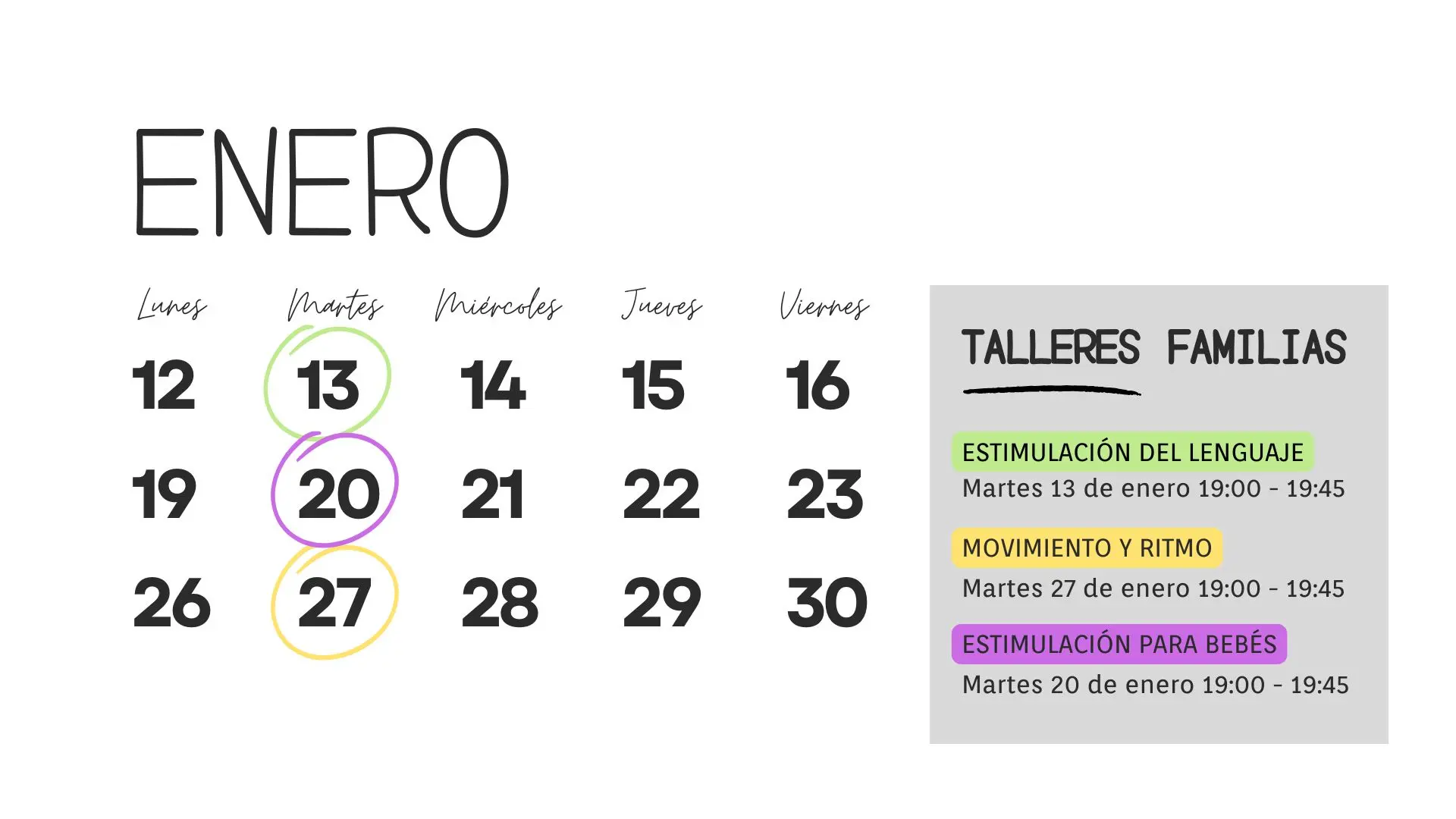 Talleres para toda la familia en horario de tardes. Ideal para bebés de 0 a 2 años.